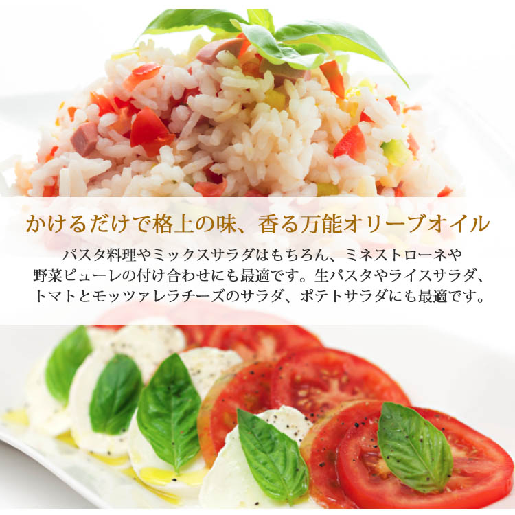 パスタ料理やミックスサラダはもちろん、ミネストローネや野菜ピューレの付け合わせにも最適です。生パスタやライスサラダ、トマトとモッツァレラチーズのサラダ、ポテトサラダにも最適です。